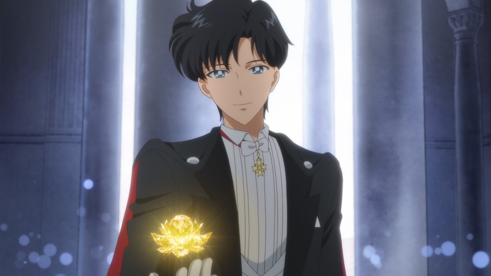 หน้ากากทักซิโด้ ปกป้อง เซเลอร์มูน ที่โดนพลังของ กุนไซต์ หนึ่งในจตุรเทพของ ควีนเบริล ทำให้หน้ากากทักซิโด้ต้องเสียสละตัวเอง แต่นั้นก็ทำให้ผลึกเงินมายาโผล่ออกมา และพลังบางส่วนไหลเข้าสู่ตัวของหน้ากากทักซิโด้